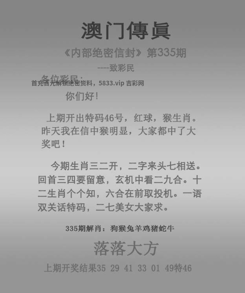 | 335期:绝杀三肖【猪鼠龙】开狗44准 |